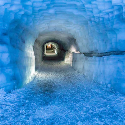 Langjokull Glacier, IcelandBoard an 8-wheel glacier truck to make your way through the icy blue tunnels and caves of the Langjokull Glacier. Deep inside the frozen labyrinth admire fjords and waterfalls as you learn of the effects of global warming on the landscape and watch as the ice melts and transforms before your eyes. |