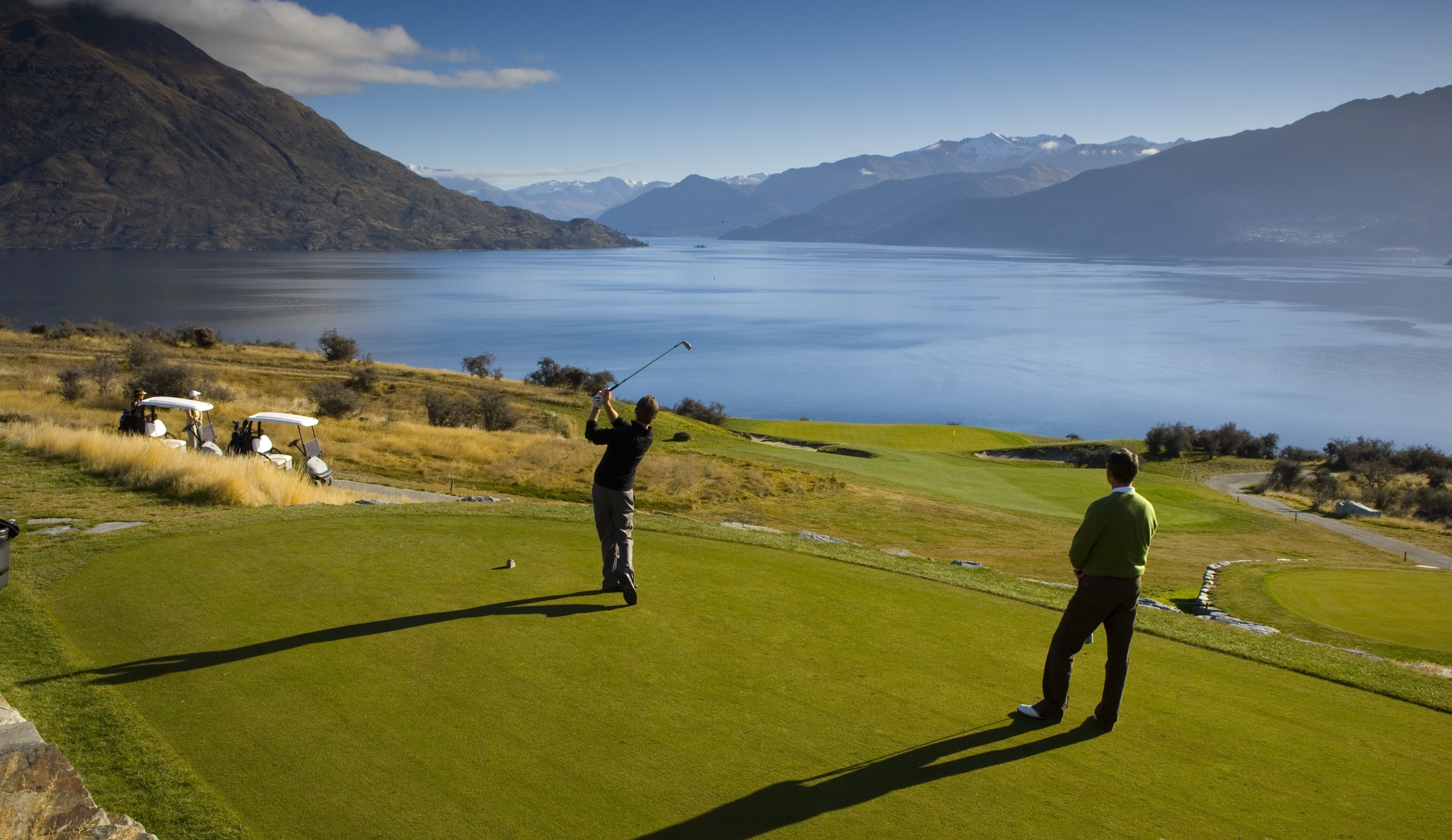 But the view is even more spectacular. Lake panoramas and the breathtaking 2300 vertical meters of the aptly-named The Remarkables mountain range are the best possible distraction from your game.